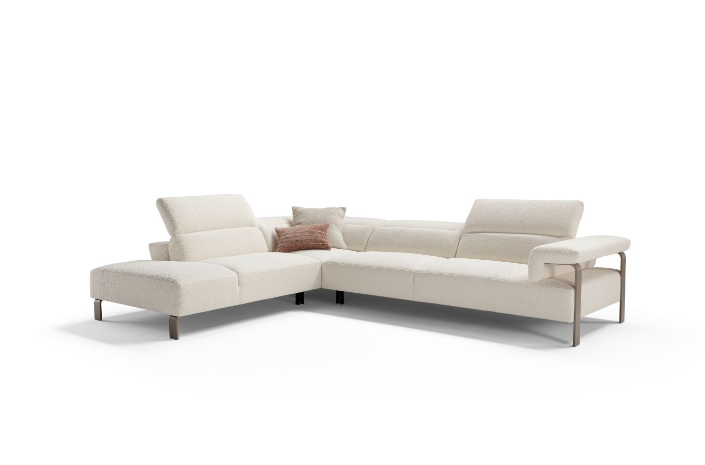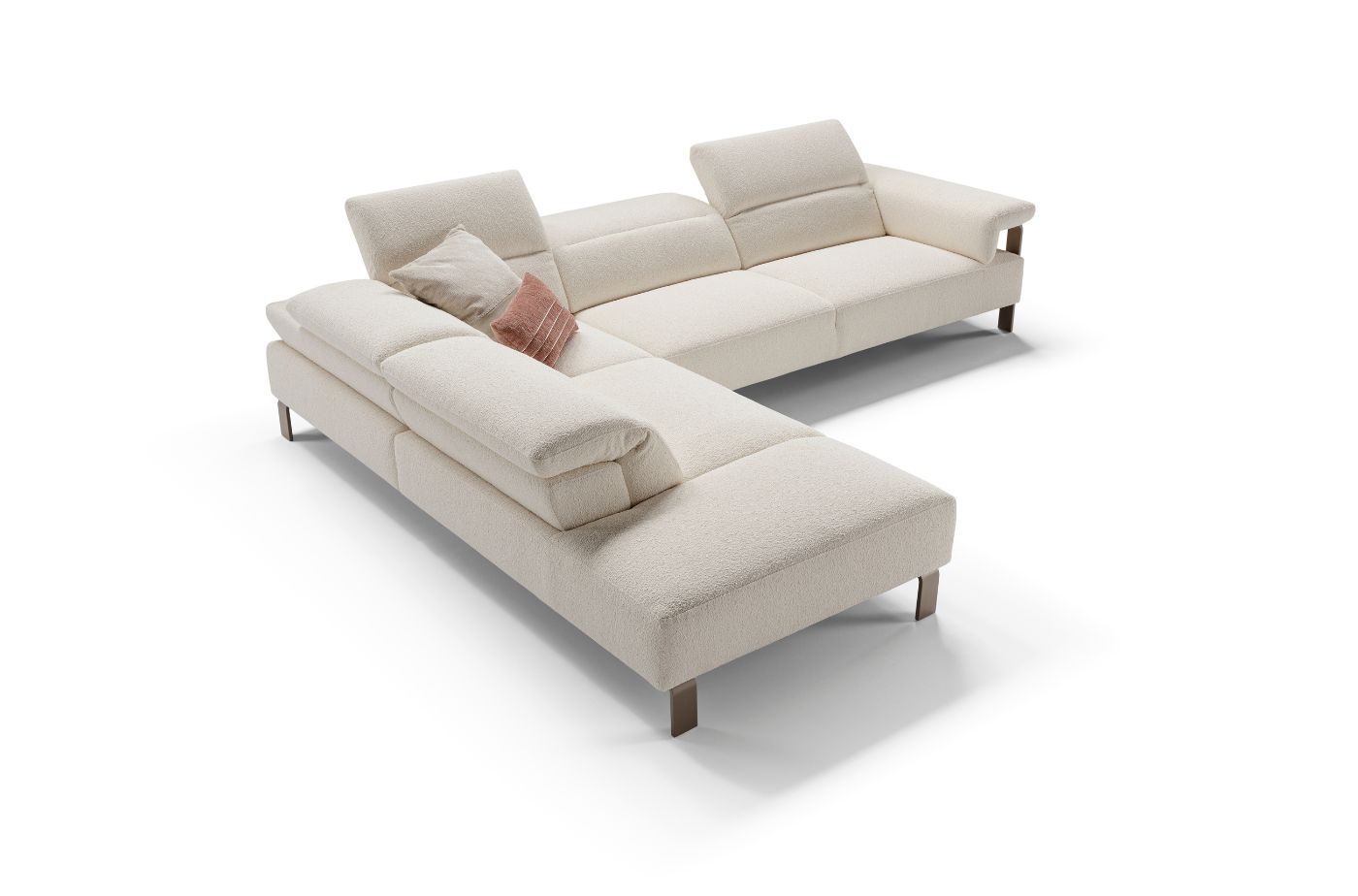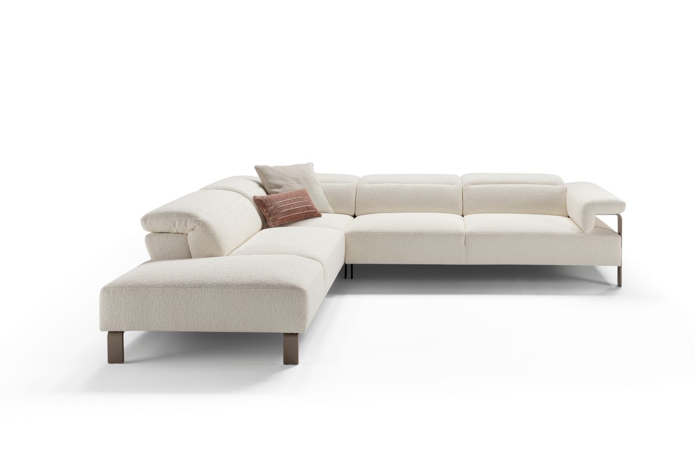 The geometric shapes meet the soft and cosy comfort of the backrests equipped with manually adjustable headrests according to the desired comfort.