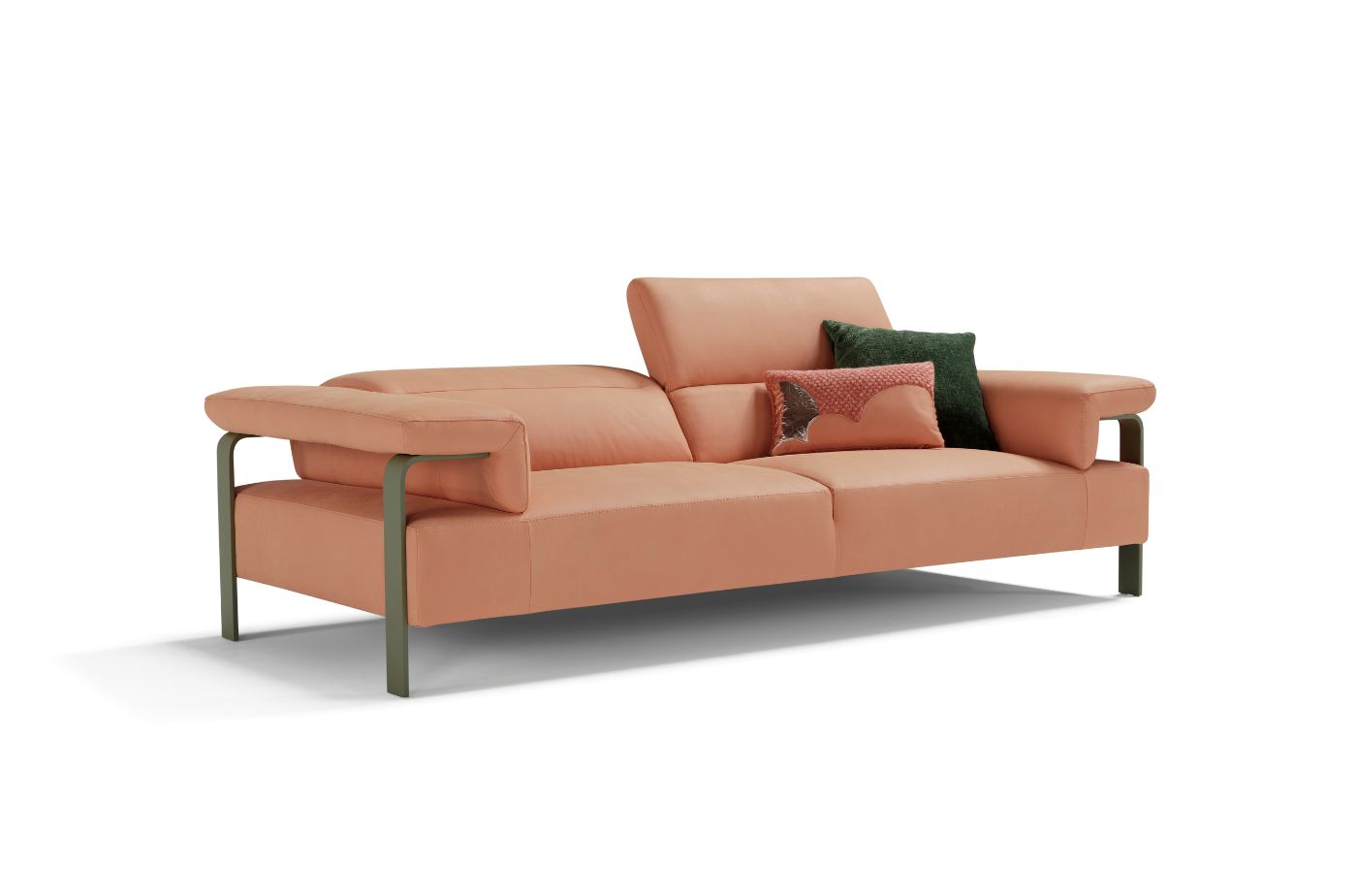 The seats’ rational, square, and modern shape meets the softer look of the armrests and backrests in a combination of cosy shapes and rigorous volumes that marks the stylistic feature of this contemporary sofa.