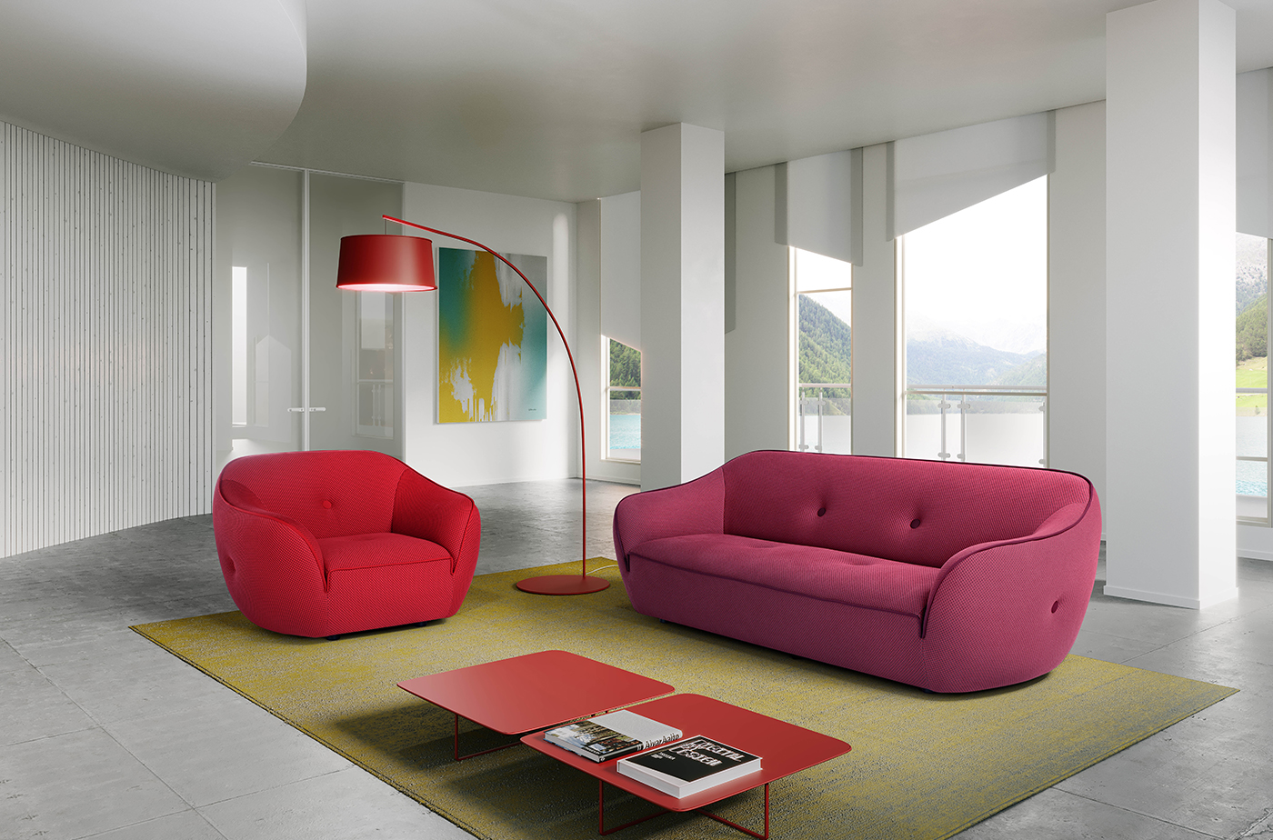 BEBOP is the not common sofa characterized by a coloured elastic covering and lycra details. Available in different configurations, BEBOP is also a funny armchair.