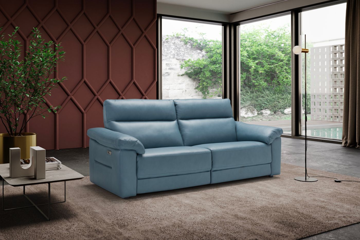 BELTER is the sofa with minimal design and embracing comfort. It is also available in relax version with a combined mechanism backrest-footrest.
