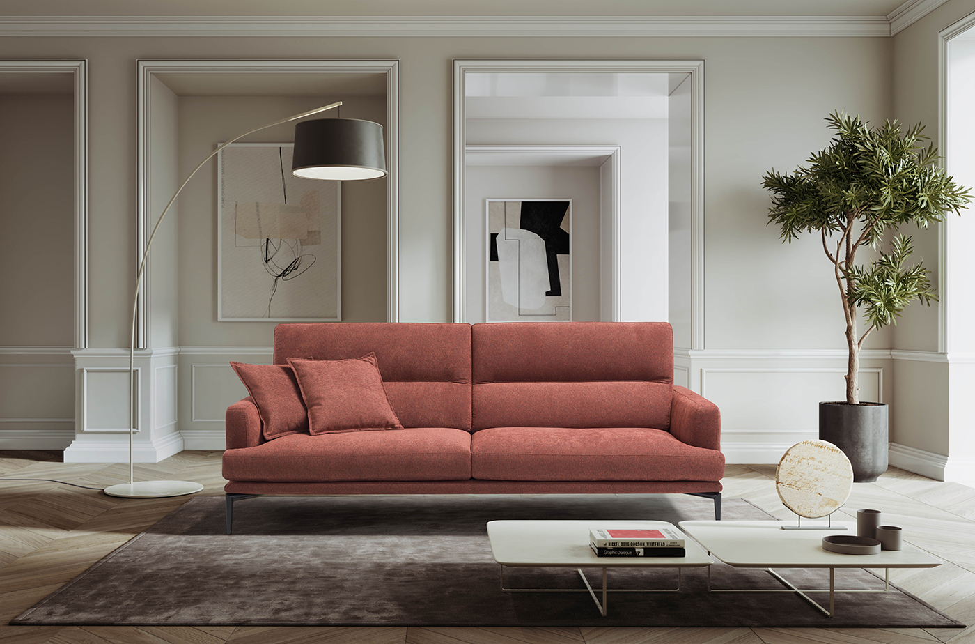 The elegant and minimal lines of Flavia reflect the clean, effortless style typical of 1970s design. Its manually adjustable swing backrests allow you to modify the seat depth, offering a personalized level of comfort for every moment of relaxation.
