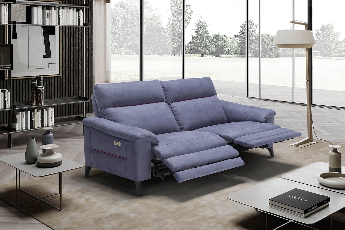 Diego is perfectly suited for contemporary and modern interiors. Featuring a high backrest with a clean, simple style, Diego is also available in a recliner version with an integrated backrest and footrest mechanism. Its minimalist design is elevated by subtle color accents, including contrasting edging on the backrest and the outer armrests.