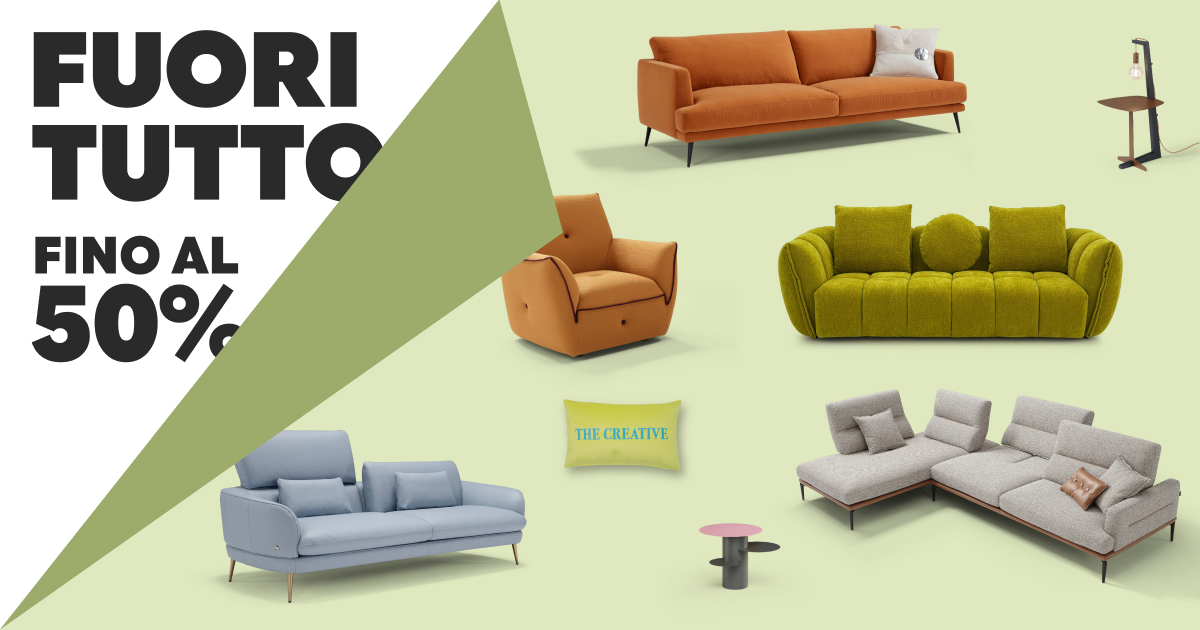 Approfitta di sconti fino al -50% su una selezione di divani, poltrone e complementi d’arredo.